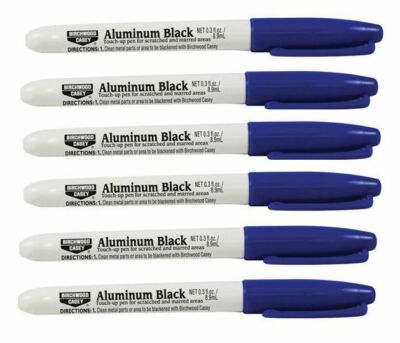 Aluminum Black Touch-Up Pen Key Features & Specifications: - Easy to use pen applicator. Keep dabbing on more fresh chemical and giving it time until you get the color you want. 5 minutes. Birchwood Casey Aluminum Black Metal Finish Pistols Show Filters. In Stock.