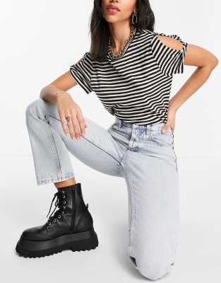Bottoms. Description: Puffed, pleat-trimmed sleeves frame this soft sweater from Topshop knit in a modern cropped fit. beige topshop asos wash leg editor jeans straight I am a Boden 6 petite and length, waist, hips, all spot on. Try out a tapered style with a high waist for a flattering fit.