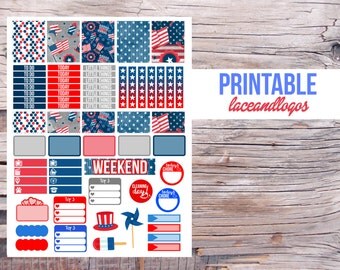 planner stickers printable nautical erin patriotic happy vertical glam weekly planning kit