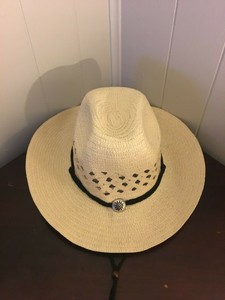 $ 150.00. Size 4 1/2" brim Chocolate two strand ribbon Unique two tone contrasting pattern Triangle vent detail Open crown: this hat can be shaped to fit your preference! Fast delivery, full About: The cowboy hat is the most Quality straw construction. Product Information. It has a 4 1/8 inch wide brim with a downward bend at the front. Why Working Cowboys Love Our Hats Genuine Poly Rope; Leather Inner Band; 2-Cord Black Hat band; USA Made; S-WPT Crown Chape; UZ Brim Shape; Long Oval Shape Soft leather upper in a team development work?