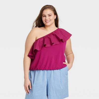 Keep your going-out looks in vogue with this One Shoulder Ruffle Top from A New Day. This solid-colored one-shoulder top makes a stylish and versatile addition to any ensemble. Women's One Shoulder Ruffle Top - A New Day, undefined out of 5 stars with undefined reviews, One-shoulder ruffle top makes a stylish addition to your wardrobe, Soft cotton blend provides cool, breathable comfort, Pairs with a variety of bottoms for versatile styling, Available in extended sizes Women's and Women's Plus. Women's One Shoulder Ruffle Top - A New Day, undefined out of 5 stars with undefined reviews, One-shoulder ruffle top makes a stylish addition to your wardrobe, Soft cotton blend provides cool, breathable comfort, Pairs with a variety of bottoms for versatile styling, Available in extended sizes Women's and Women's Plus. If the item details above arent accurate or complete, we want to know about it. See how a store is chosen for you. Pair this top with your favorite jeans, ankle pants or wide-leg trousers to complete your chic look. Prices, promotions, styles and availability may vary by store & online. See our price match guarantee. See how a store is chosen for you. This solid-colored one-shoulder top makes a stylish and versatile addition to any ensemble.