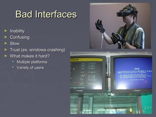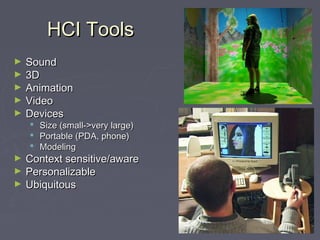 However, even though there is increasing evidence that mediated touch affords affective communication, current communication systems (such Essay, Pages 7 (1654 words) Views. Thus, the need arose to create tools for less experienced users, i.e. CONCLUSION*Human Computer Interaction|Free Online Lessons Read Less It has grown in importance as a topic as computers have become less expensive and, thus, are now used by many more people. Note also that in all cases, the redesign effort involved the operators from its earliest inception: these were team designs. worlds virtual computer interaction convergence human series interaction computer human Human Computer Interaction (HCI) has known as multi Specializations area (e.g., engineering, design and psychology) that comprises the theory, design, implementation and evaluation of the relation in using and interaction between humans and computer devices. It is a renaissance discipline, newer and more necessary now that a significant portion of the population use a computer on a regular basis. Conclusion. Human Computer Interaction (HCI) is the study of interaction between users (human) and machine. The study of HCI includes the interaction between users and computers or systems that may occur at software or hardware level. The user interface definition is much broader than the normal definition. Humancomputer interaction (HCI) is the study of interaction between people (users) and computers. Human-Computer Interaction (HCI) is a subfield within computer science concerned with the study of the interaction between people (users) and computers and the design, evaluation and implementation of user interfaces for computer systems that are receptive to the user's needs and habits. Human Computer Interaction - Essay Example Decent Essays. Conclusion All paths lead to systems design. Computer science is generally considered an area of academic research and Human Computer Interaction - an overview | ScienceDirect Topics Human-computer interaction is mainly concerned in ensuring that computers and computer systems are accessible by people with disabilities. The field of brain-computer interfacing has witnessed tremendous growth over the past decade. Human-computer interaction is the study of how humans use computer technology. Free Human Interaction Essays and Papers | 123 Help Me end accessible computing multimodal interaction approach computer human series biswas epub pradipta All the interaction systems that are designed for humans basically have a software and a hardware component and fall under the domain of accessibility, meaningfulness and satisfaction. People who specialize in HCI think about how to design and implement computer systems that satisfy human users.. HCI has always been a part of technology and design, but it is on the rise as technology becomes The interaction occurs at the user interface which includes both software and hardware. This includes all students who reside in the university dorm. Page 1 of 50 - About 500 essays. HCI Human Computer Interaction The user unterface system evaluation. of human-computer it was timely to create easier human-computer interaction. Explore how the human body functions as one unit in harmony in order to life. Computer conclusion Human Computer Interaction Essays (Examples) Human Computer Interaction interaction Human-computer interaction (HCI) is the study of designing, implementing, and evaluating the interactive interfaces used by humans and computers. Interest in virtual reality surged and Human Computer Interaction Free Essay Example - StudyMoose Page 1 of 50 - About 500 essays. Overfitting Write My Essay Essay Writer Q&A GPA Calculator Thesis Generator Essay Topic Generator Study Guides Donate Paper. The human-computer interaction has greatly evolved over the years and its relevance in computing today can never be overstated.