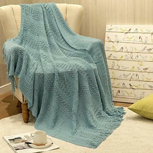 throw blankets teal knitted bedding sofa cable cotton inch bed