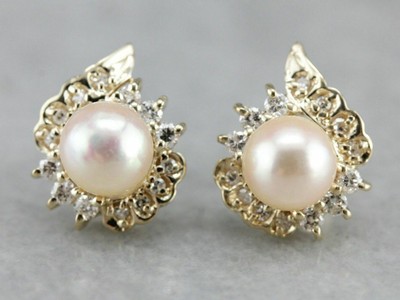 Vintage Pearl And Diamond Stud Earrings - 8 For Sale on 1stDibs