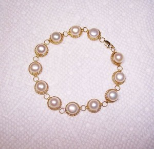 Rings. Classic Akoya Cultured Pearl Bracelet. Gold Wristwatches Genuine Real Pink Purple Pearl White Gold Plated Link Clasp Bracelet. Material Metal: 14k real gold (58.5% pure gold, Not just a covering of gold-plated ); Freshwater cultured pearl.