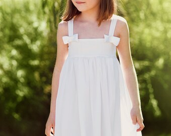 communion lace dress maxi A crisp white dress with adjustable lace straps that tie in a bow in the back.