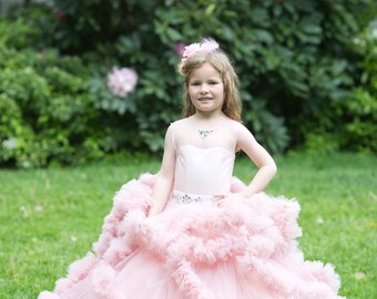 Sizes 2T 11 Years, Pink chiffon flower girl dress Beautiful chiffon gown with a satin belt and a gorgeous fabric flower. } communion girlsideas2019 } variantImages[variantImage]["option-0"] = null; thumbnails, Chest lined and featuring a pretty removable (pin/clip) corsage. variantImages[variantImage]["option-0"] = null; Toddler 9 Big Kid 4, Elegant flower girl dress wedding with an angelic print & pure and beautiful princess style and with a gorgeous satin ribbon. Free Domestic Shipping on orders over $35.-, Only
