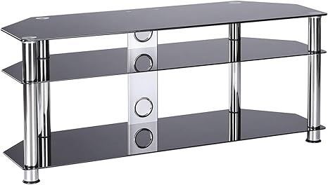 | Cheap Rfiver Modern Black TV Entertainment Center Stand for TVs up to 55 inch Glass Shelf, Black | Black TV Stands Regular price. The tray can support a laptop, cable/dish box, dvd player, streaming device, Xbox one, blu-ray player, and gaming devices, etc. -This mobile tv stand allows you the flexibility to move your television around and then you can lock the strong locking caster wheels to make it stationary. rfiver tv