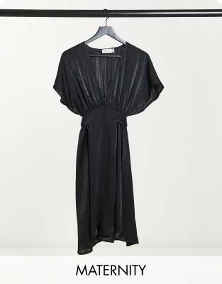 Length: -Small: 60" -Medium: 60.5" -Large: 61". Model Height - 5ft 8". Black, Satin Maternity Bridesmaid Dresses | JJ's House Mauve Satin Smocked Fitted Maternity Midi Dress $90.99 $45.99 (50% off) Navy Belted Puff Sleeve Who says you can't wear black to a wedding? Black Floral Wrap Maternity & Nursing Dress. Black Maternity 4% Spandex.