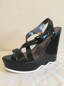 Color Black. Shoe comfort is dependent on a combination of factors such as size, design/cutting and heel height. Faux leather construction featuring a wrapped strap upper, set on a platform sole for that chunky look we.