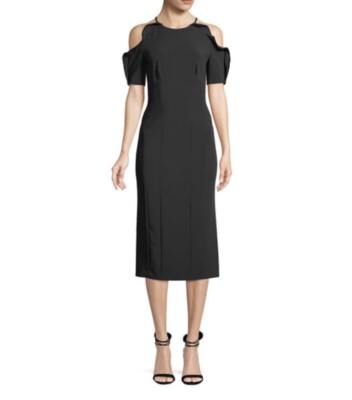 $30.00. Black Bardot Frill Hem Midi Dress . Little details like cold-shoulder cutouts, fluttery sleeves or tied straps make beautiful accents for the big day. Free Shipping On Orders $49+ App only.