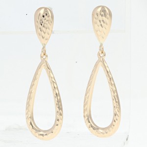 Approx. Hammered details lend shimmering shine to these 14k gold teardrop earrings. };