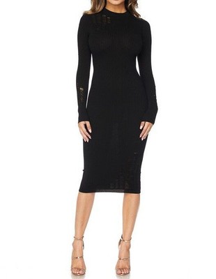 ribbed Ribbed Midi Dress Long Sleeve Double Scoopneck Stretch Dress Length = 47" 96% Cotton 4% Spandex Imported from Fashion Nova Regular Price $250.00.