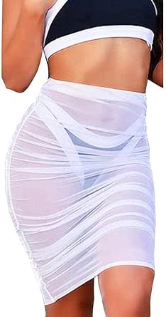 Sold by conniesfavorite. Women Sheer Mesh Skirt Bikini Cover-Ups Stars Print Elastic Waist Beach Wrapped Skirt Swimsuit Cover Up. White Sheer