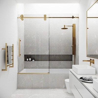 x 73.5 in. C6 . 1 product ratings - Vigo VG60416066 Elan 66"H x 60"W Sliding Frameless Tub Door - Chrome, 1 product ratings - Vigo VG60416074 Elan 74"H x 60"W Sliding Frameless Shower Door - Stainless Steel, Shower Head Holders, Shower Arms & Slide Bars. The wall mount brackets for the structural rail have 13mm of built-in adjustability and the fixed panel holders have up to 10 mm built-in adjustability to ensure that your VIGO product is easy to install and accommodate minor adjustments, such as out-of-plumb walls. A4. Use the provided alien key to unscrew the adjustment screw and dismantle the roller. frameless vigo curbappeal choosing showers
